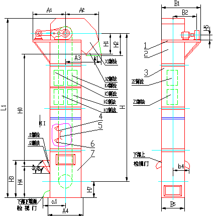 HL型環鏈離心斗式提升機外形示意圖